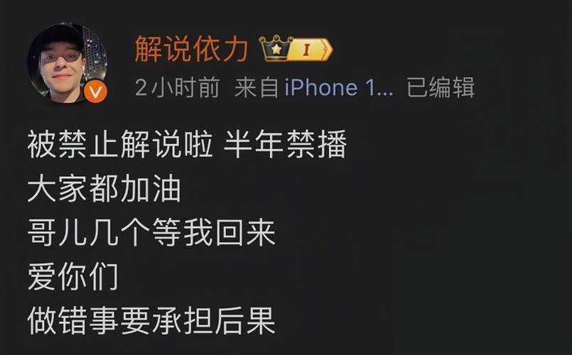 或许有人觉得祸从口出的代价过于沉重,但体育解说从来不是自由舞台。作为连接赛事与球迷的桥梁,解说员的一言一行不仅影响观赛体验,更承载着传递体育精神、尊重运动员与球迷的责任。无论是此次的“猿类啼叫”隐喻,还是依力对球员家属的调侃,本质上都是对职业操守的漠视,对运动员与特定群体的不尊重。在信息传播极速的当下,一句不当言论可能引发地域对立、伤害群体感情,平台的严厉处罚绝非小题大做,而是对行业秩序的维护。