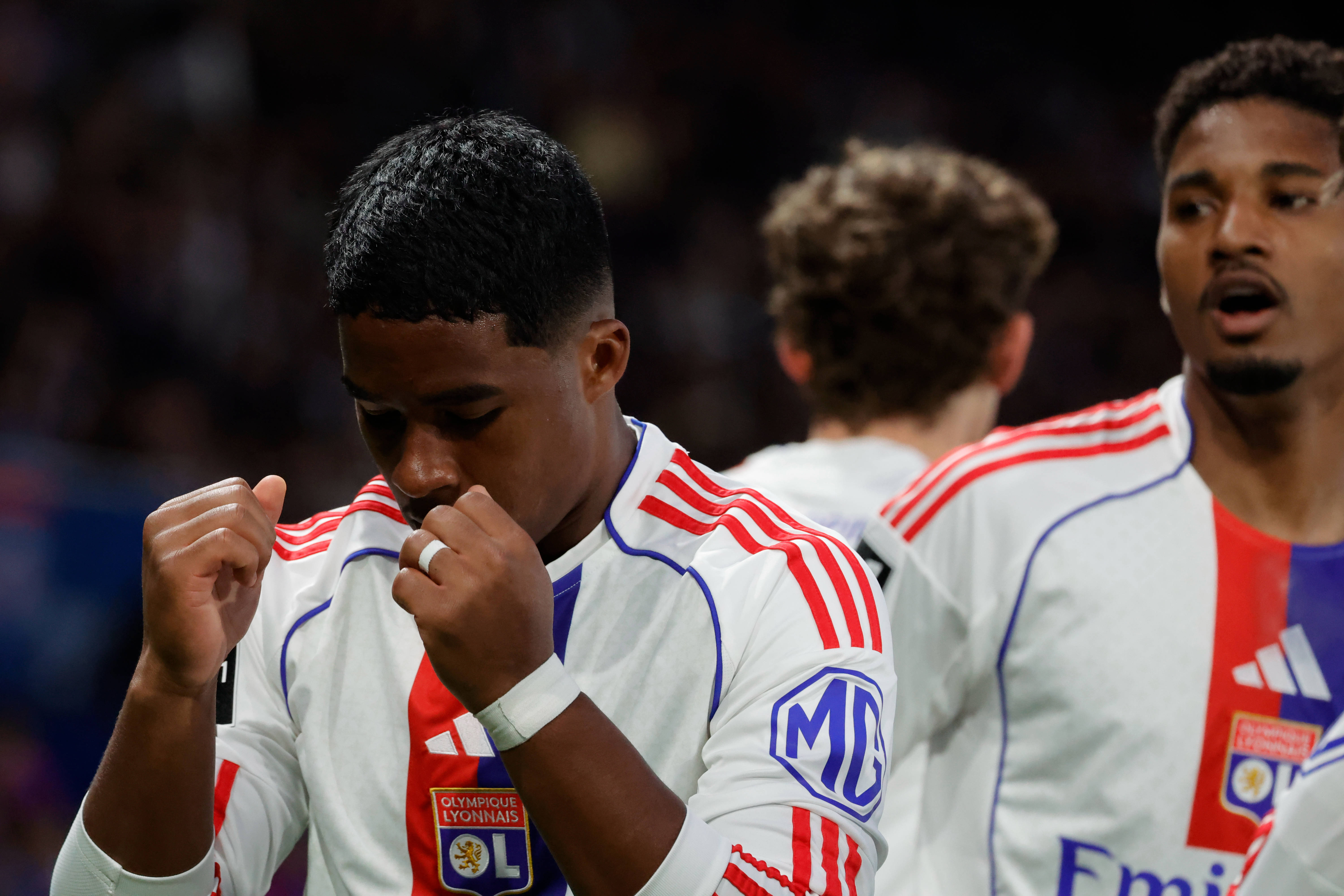 4月19日,里昂队球员恩德里克在进球后庆祝。 新华社发(亨利·施瓦茨摄)