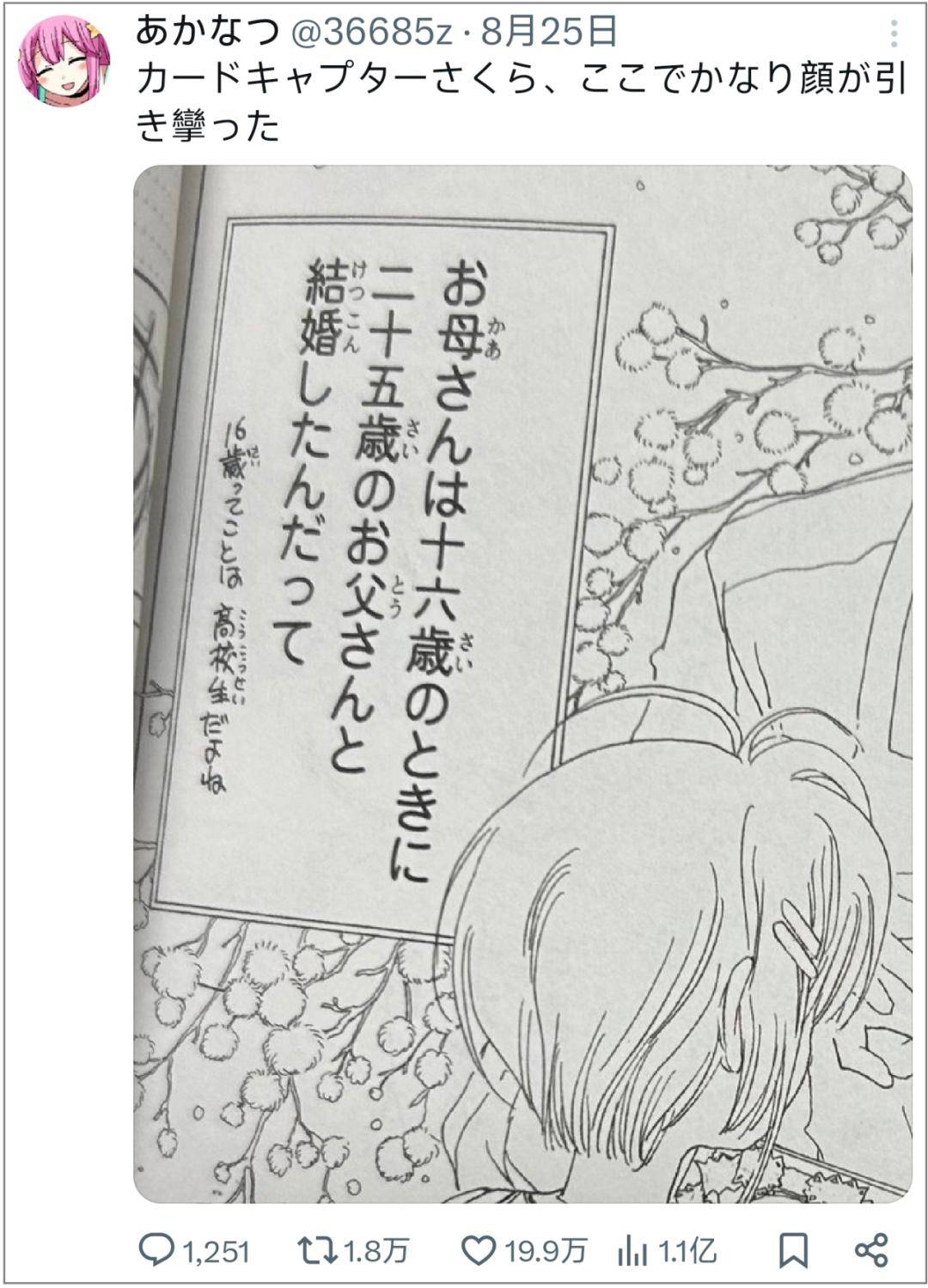 起因是该片剧场版在日本影院重映,里面一些关于爱情的描写重新受到关注。其中“小樱父母结婚时分别为25岁老师与16岁学生”的设定,因为一条吐槽向的推文,成了日本X平台的爆炸性话题。